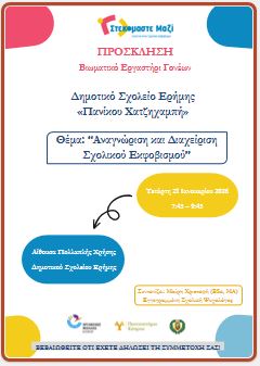 2. Βιωματικό εργαστήρι Γονέων με θέμα: "Στεκόμαστε Μαζί ενάντια στον Σχολικό Εκφοβισμό" (21/01/2026)